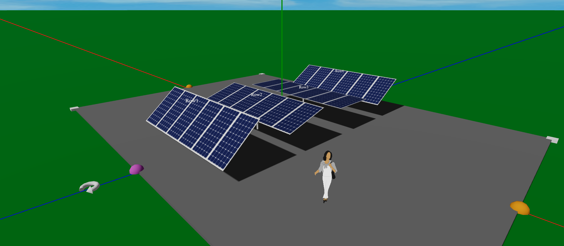 With this integrated human-AI capability at our fingertips, we can easily confirm that, given this inter-row spacing between adjacent solar panel rows, the optimal tilt angle obtained for a single row of solar panels without considering inter-row shadowing is no longer optimal. The following shows the difference in electricity outputs when we choose that tilt angle (~42°) to be the starting point for all the solar panels and "ask" AI to come up with a better solution. The following images show the comparison of the results. Note that, to speed up the evolution, we only sample four days from different seasons (1/22, 4/22, 7/22, and 10/22) to represent the whole year. This simplification should not affect the conclusions qualitatively. More days can be included if a higher accuracy is needed.