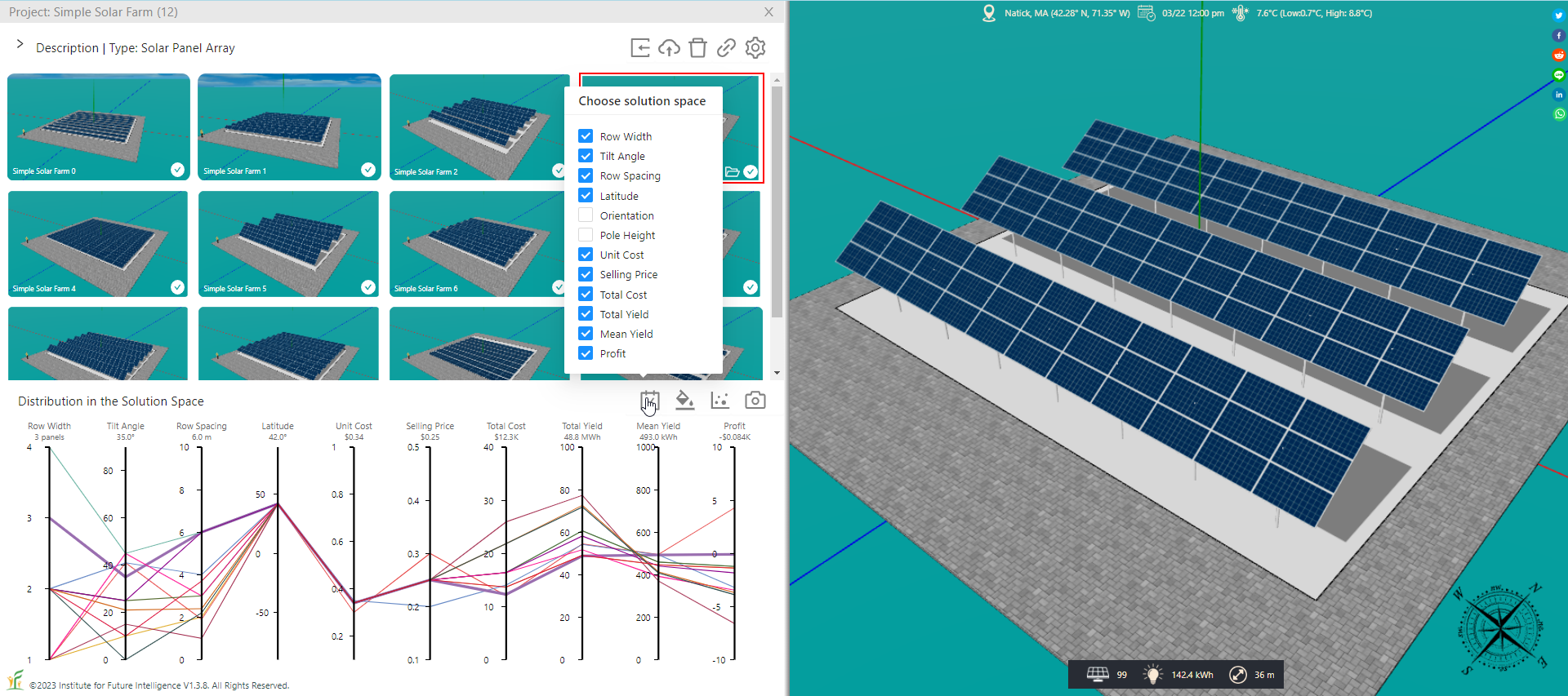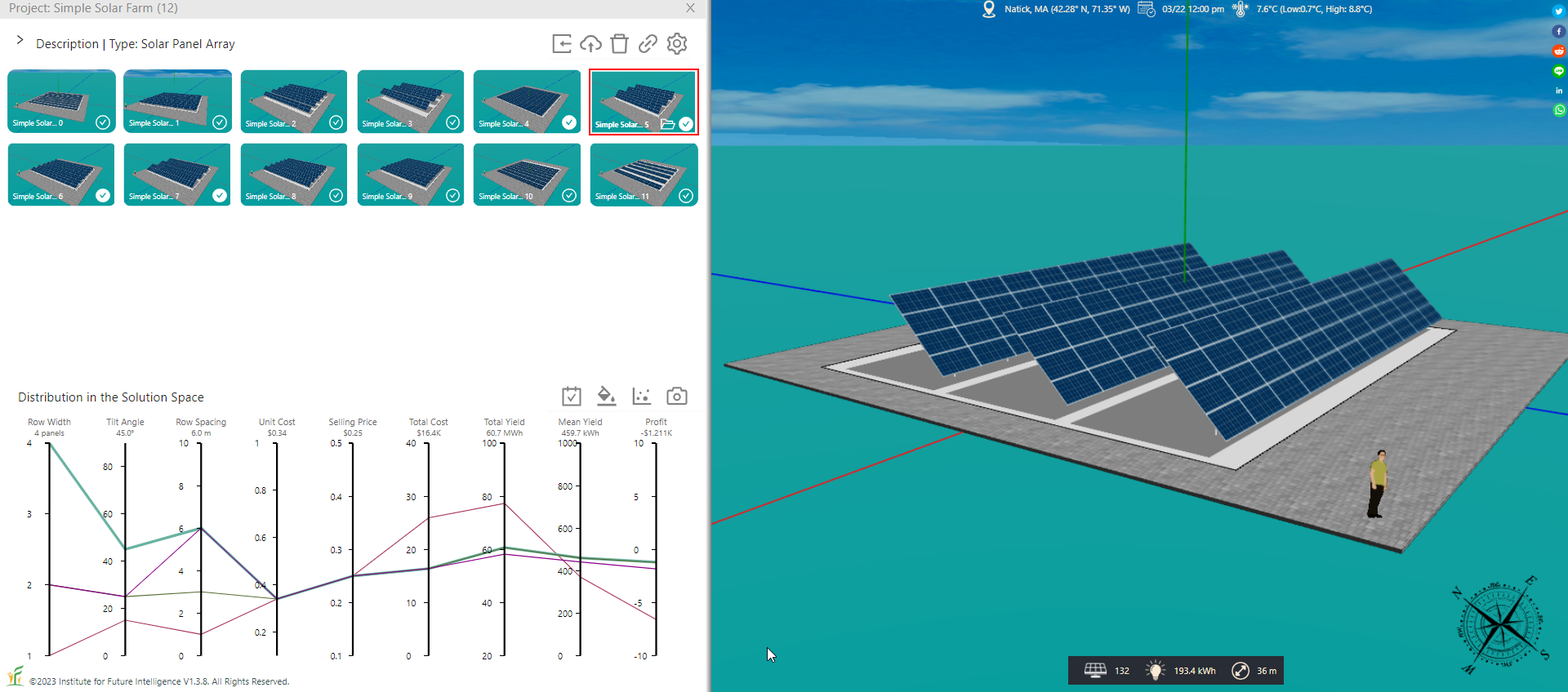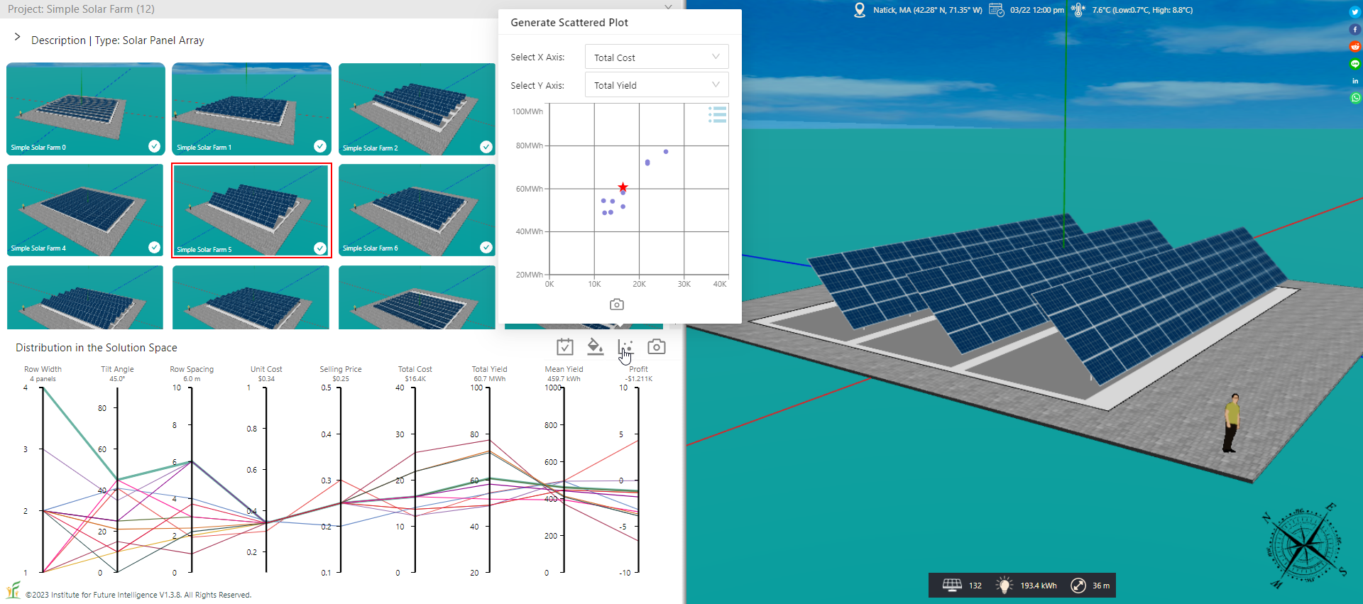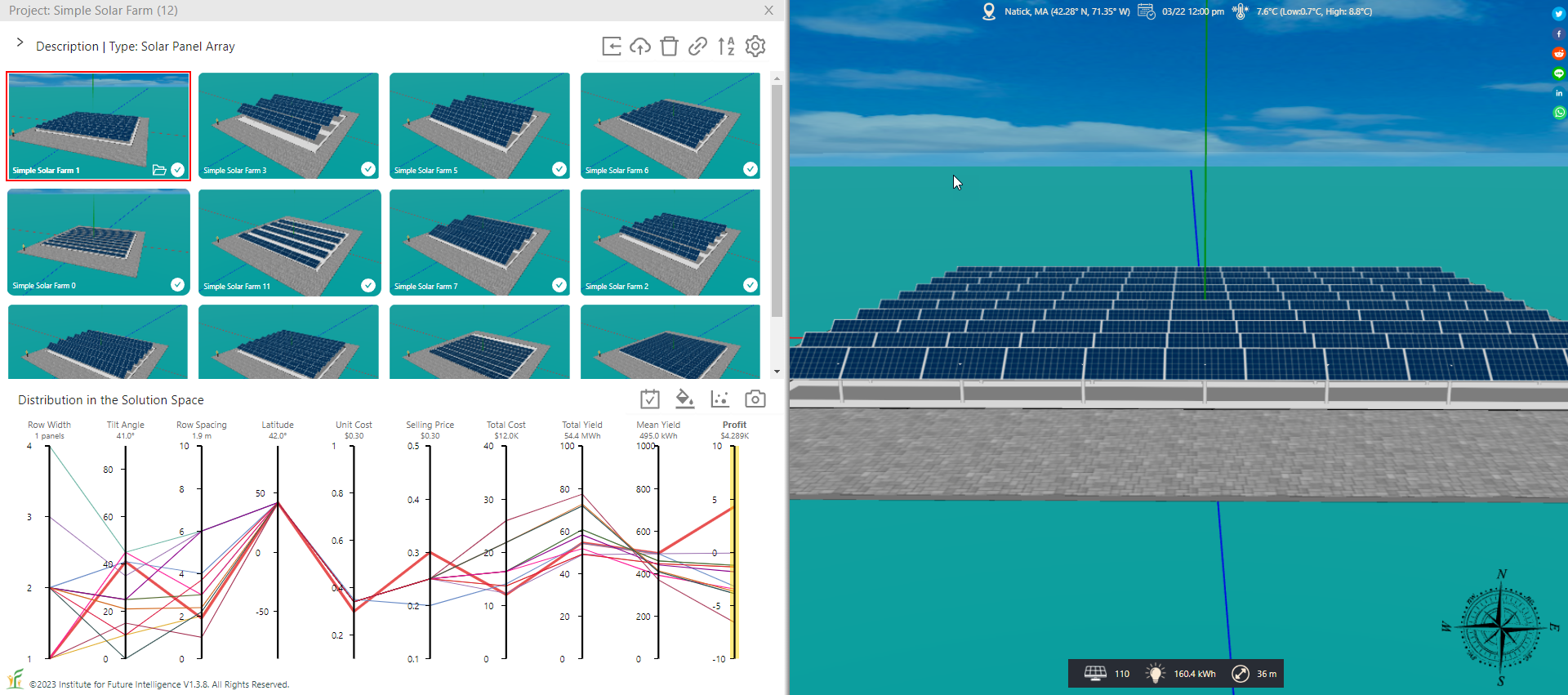 With the ability to generate many designs such that the solution space can be surveyed more thoroughly, the designer faces a different kind of challenge (sort of like moving from a situation of "idea drought" to a situation of "idea flood"): How can one analyze, compare, and sift those design options and alternatives so that one can pick and choose without being overwhelmed by the sheer number of possibilities? In the field of engineering, the methodology to deal with this kind of complex problems is often referred to as optioneering. In this article, I will show you how Aladdin handles this challenge with the design of a simple solar farm as an example. Note that you must sign in with Aladdin in order to use all the functionalities introduced in this article as many of them depend on cloud storage to function.