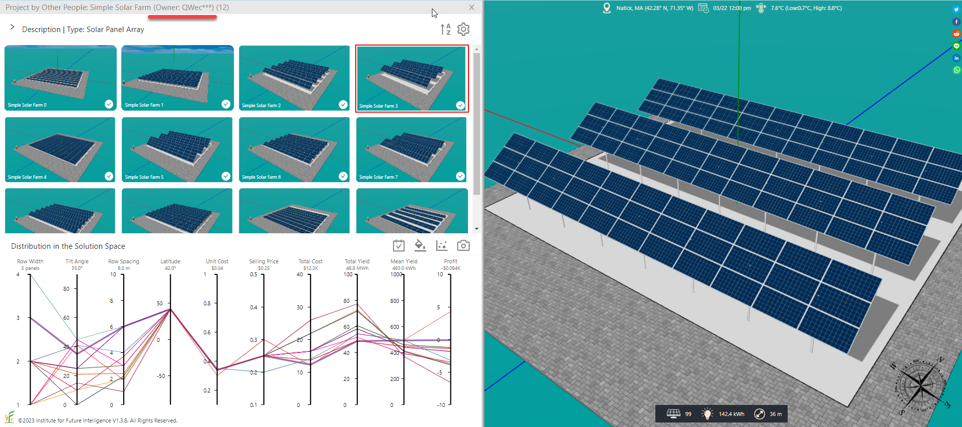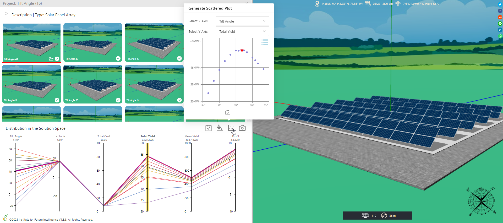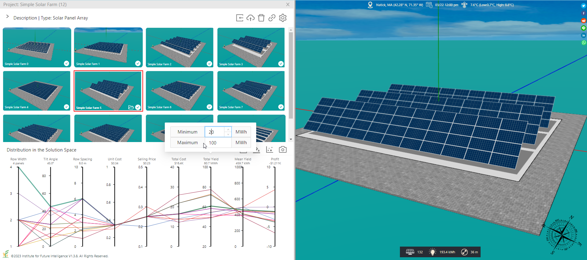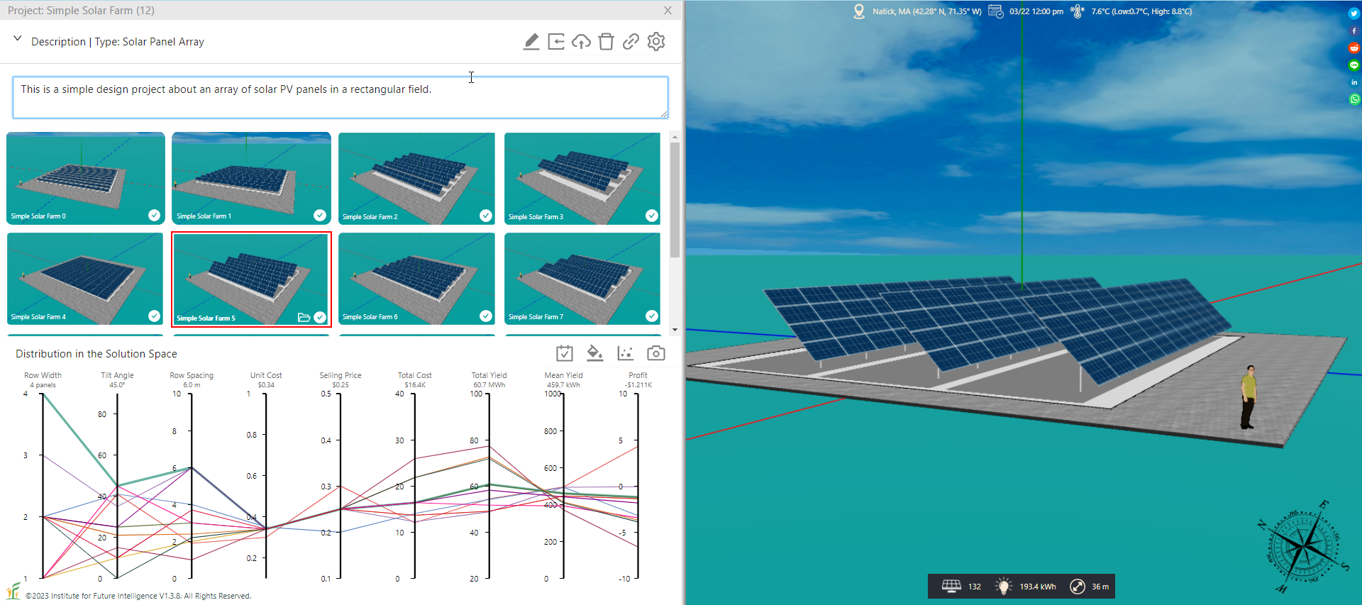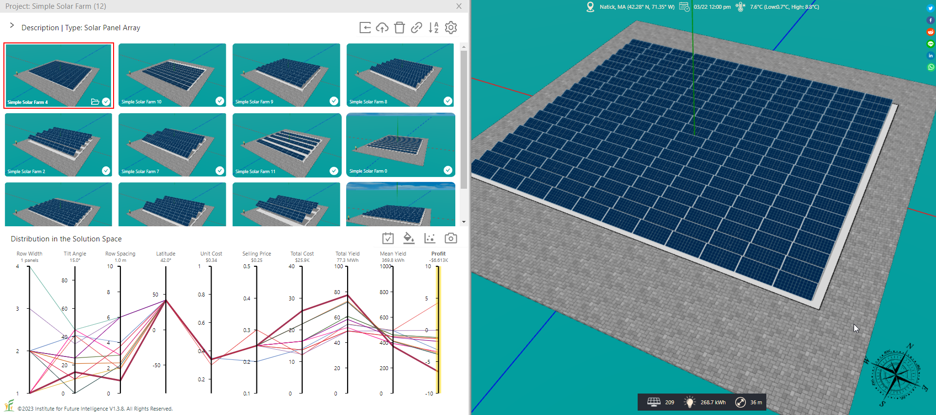 With the ability to generate many designs such that the solution space can be surveyed more thoroughly, the designer faces a different kind of challenge (sort of like moving from a situation of "idea drought" to a situation of "idea flood"): How can one analyze, compare, and sift those design options and alternatives so that one can pick and choose without being overwhelmed by the sheer number of possibilities? In the field of engineering, the methodology to deal with this kind of complex problems is often referred to as optioneering. In this article, I will show you how Aladdin handles this challenge with the design of a simple solar farm as an example. Note that you must sign in with Aladdin in order to use all the functionalities introduced in this article as many of them depend on cloud storage to function.