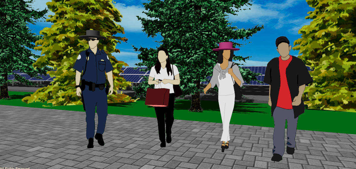 Visibility analysis in Aladdin requires adding observers to desired vantage points in a 3D model. In Aladdin, users can add humans and move them anywhere. To make a human an observer, right-click on him or her and select "Observer" from the pop-up menu. If a person becomes an observer, a hat will be drawn on top of his or her head to mark this status, shown as below.