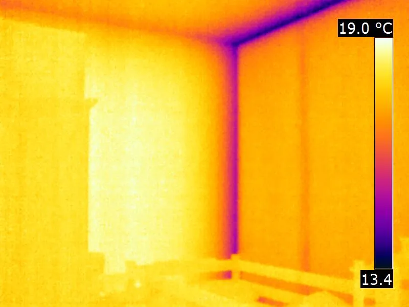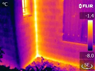 Figure 3: An infrared thermal image of a geometric thermal bridge formed by a wall junction (Image credit: Stefan Mayer)